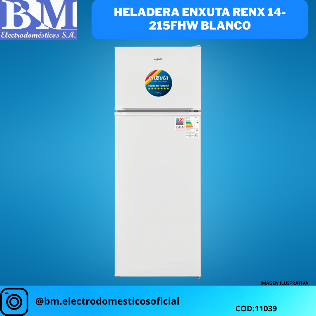 Si estás buscando una heladera que combine eficiencia, estilo y funcionalidad, la Enxuta RENX 14-215FHW Blanco es la opción perfecta para renovar tu cocina. Con su excelente desempeño y diseño impecable, es el complemento ideal para mejorar tu día a día.