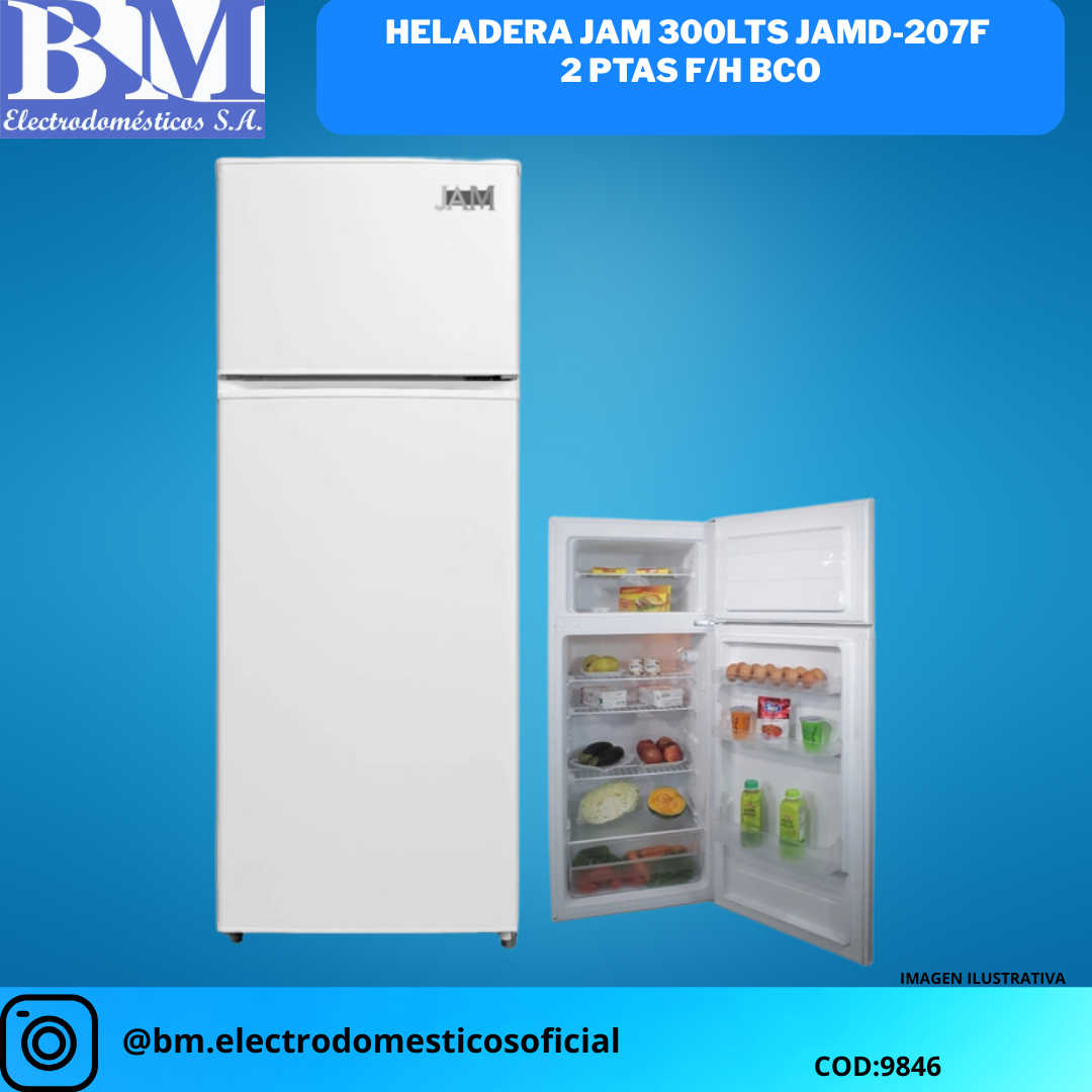 In summary, this refrigerator combines efficient cooling, smart storage, and energy-saving features in one elegant package. Its 300L capacity makes it perfect for midsized families or those who enjoy stocking up on fresh produce and frozen goods. Upgrade your kitchen today with the HELADERA JAM 300LTS JAMD-207F 2 PTAS F/H BCO and enjoy the perfect blend of form and function.