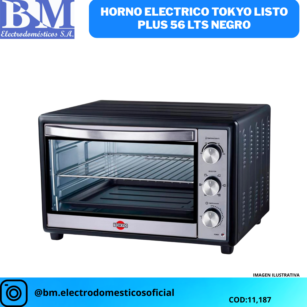 Este horno eléctrico destaca por su robusta construcción y moderno acabado negro. La gran capacidad de 56 litros permite preparar desde platos pequeños hasta banquetes completos. Equipado con controles precisos de temperatura y tiempo, el Horno Eléctrico Tokyo Listo Plus asegura una cocción uniforme en cada preparación. Sus funciones múltiples incluyen opciones como asar, hornear y gratinar, brindándote total flexibilidad en la cocina.
